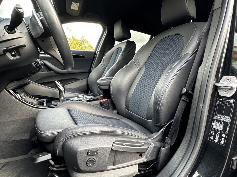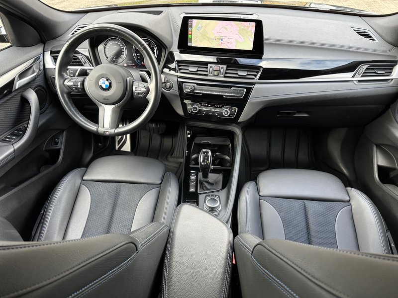 BMW X2 mit Allrad und M-Sportpaket aus 2. Hand und einer umfangreichen Ausstattung. CarPlay, Digital-Tacho, Ambientebeleuchtung, Teil-Leder, Automatik, Dachreling Shadowline und vorallem eine abnehmbare AHK ab Werk mit 2.000kg Zuglast und 80kg Stützlast.