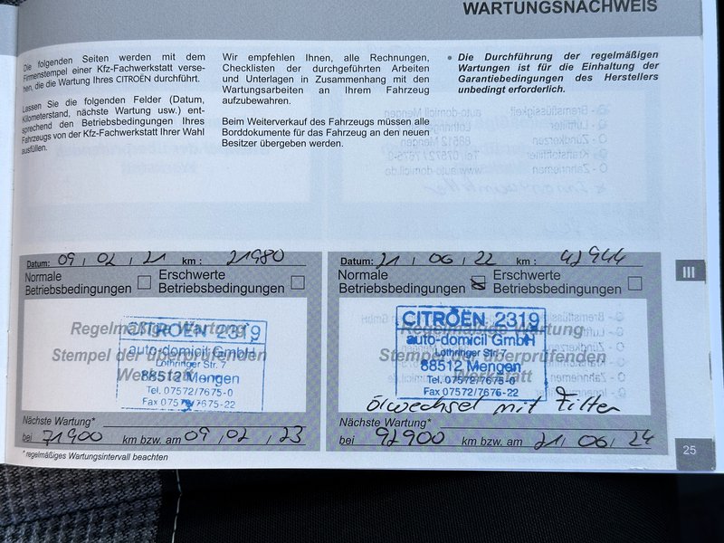 Citroen Raumwunder aus 1. Hand mit einer umfangreichen Ausstattung wie eine abnehmbare AHK 2300Kg / 750 Kg Zuglast und 92Kg Stützlast, Lückenlos Werkstattgepflegt - letzte Wartung bei 102.586km am 14.03.2025