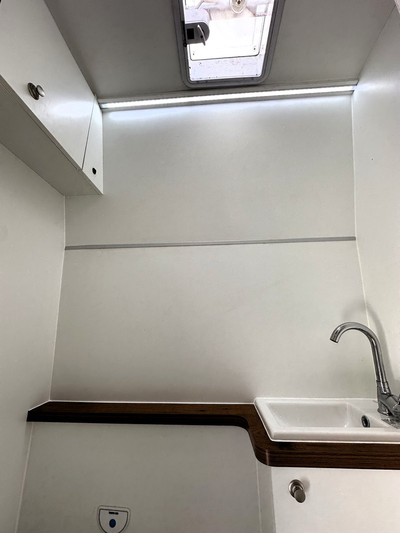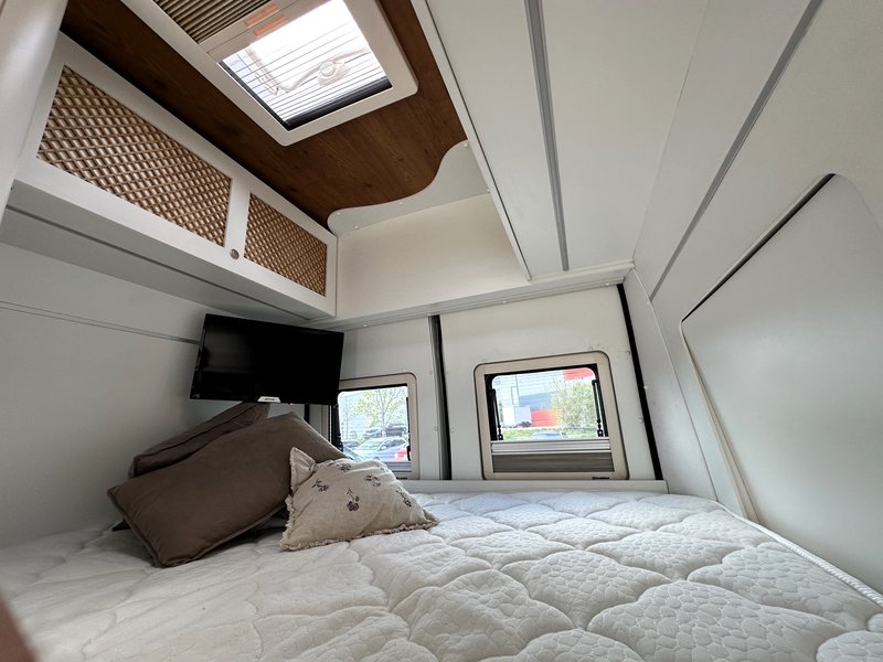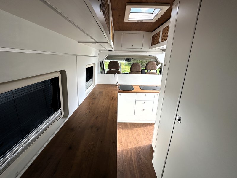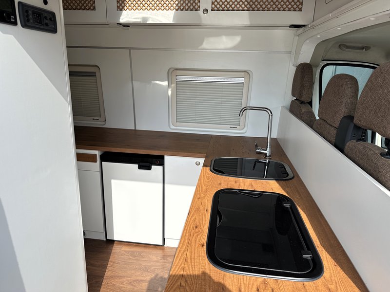 individuller Wohnmobilausbau der Firma ZIRVE mit Nasszelle, Bett 180cm Länge, PV-Anlage, Gasherd, Kühlschrank für 2 Erwachsene + Kind möglich