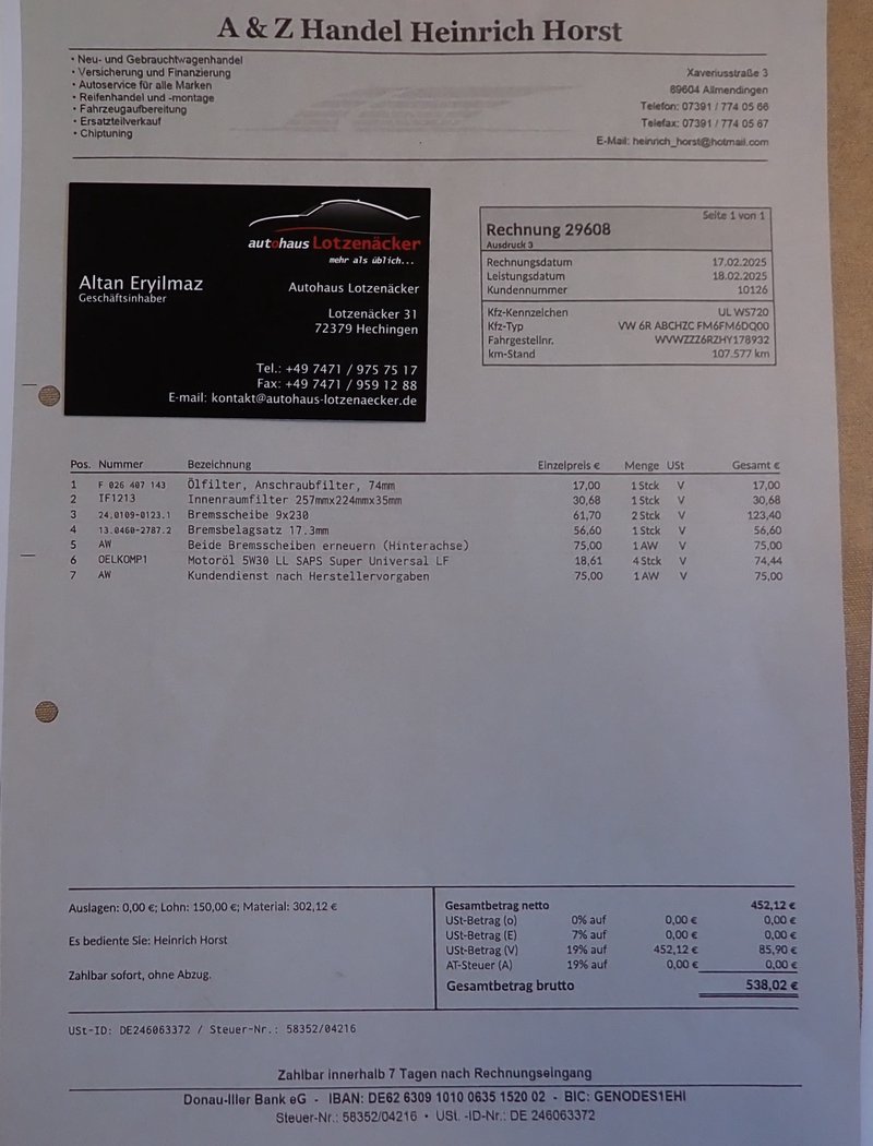Sehr gepflegtes Fahrzeug aus 1. Hand, Scheckheftgepflegt, Letzter Service bei 107577km am 18.02.2025, 8-fach-bereift auf Alufelgen, Bremsen VA + HA wurden vor kurzem erenuert. Inkl. 1 Jahr Gebrauchtwagen - Garantie.
