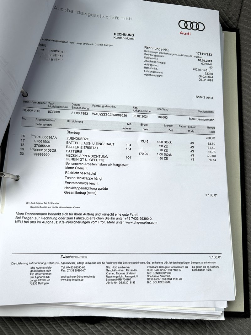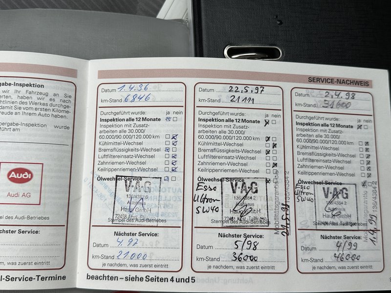 letzer Besitzer (90Jahre) hatte ihn 23 Jahre im Bestand. Es gibt ein paar Stellen die nachlackiert worden sind aufgrund Parkrempler.
